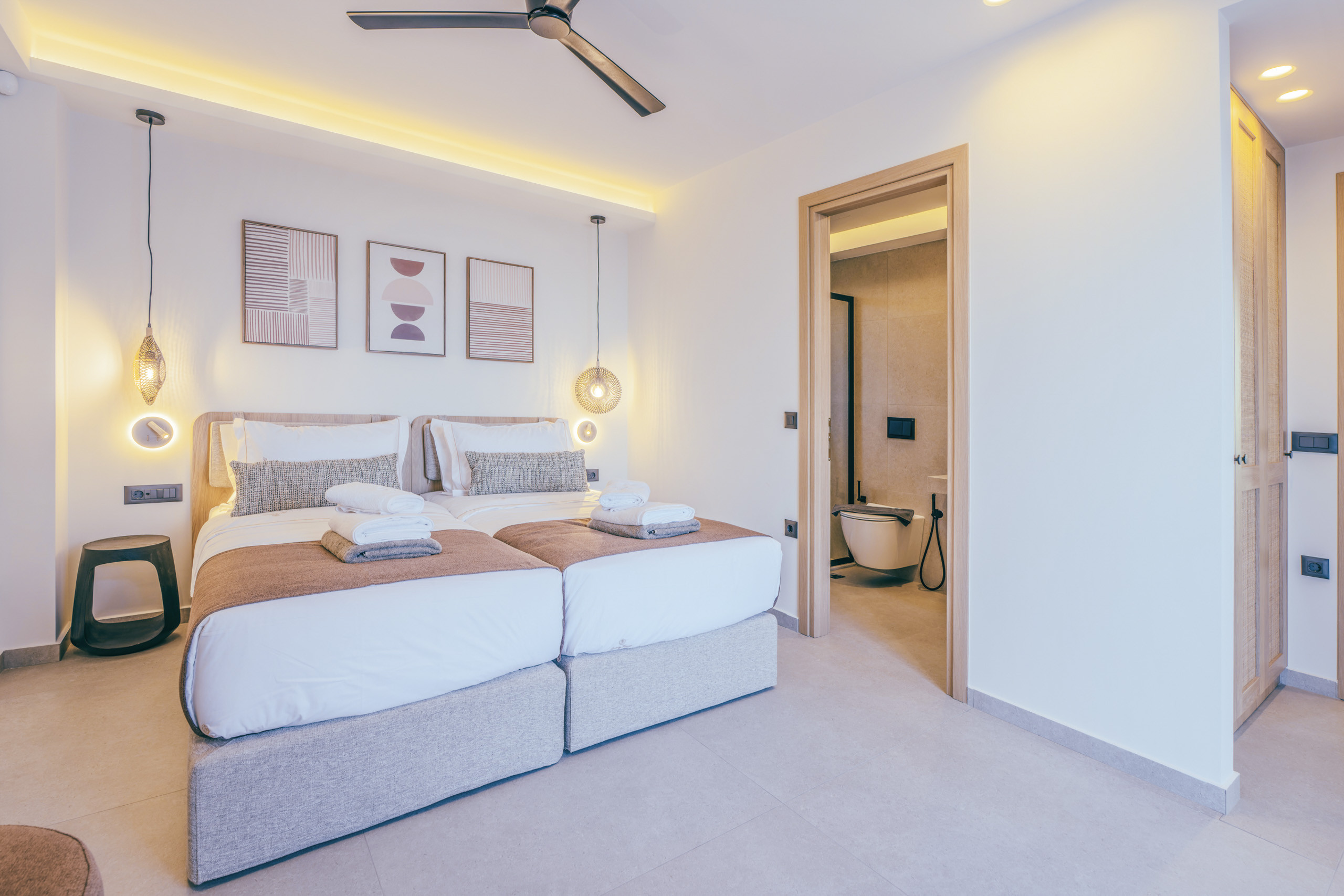 Schlafzimmer 5: Verfügt über 2 Einzelbetten und ein Badezimmer en-suite. Dieses Zimmer sticht durch seinen privaten Balkon mit Outdoor-Jacuzzi hervor.