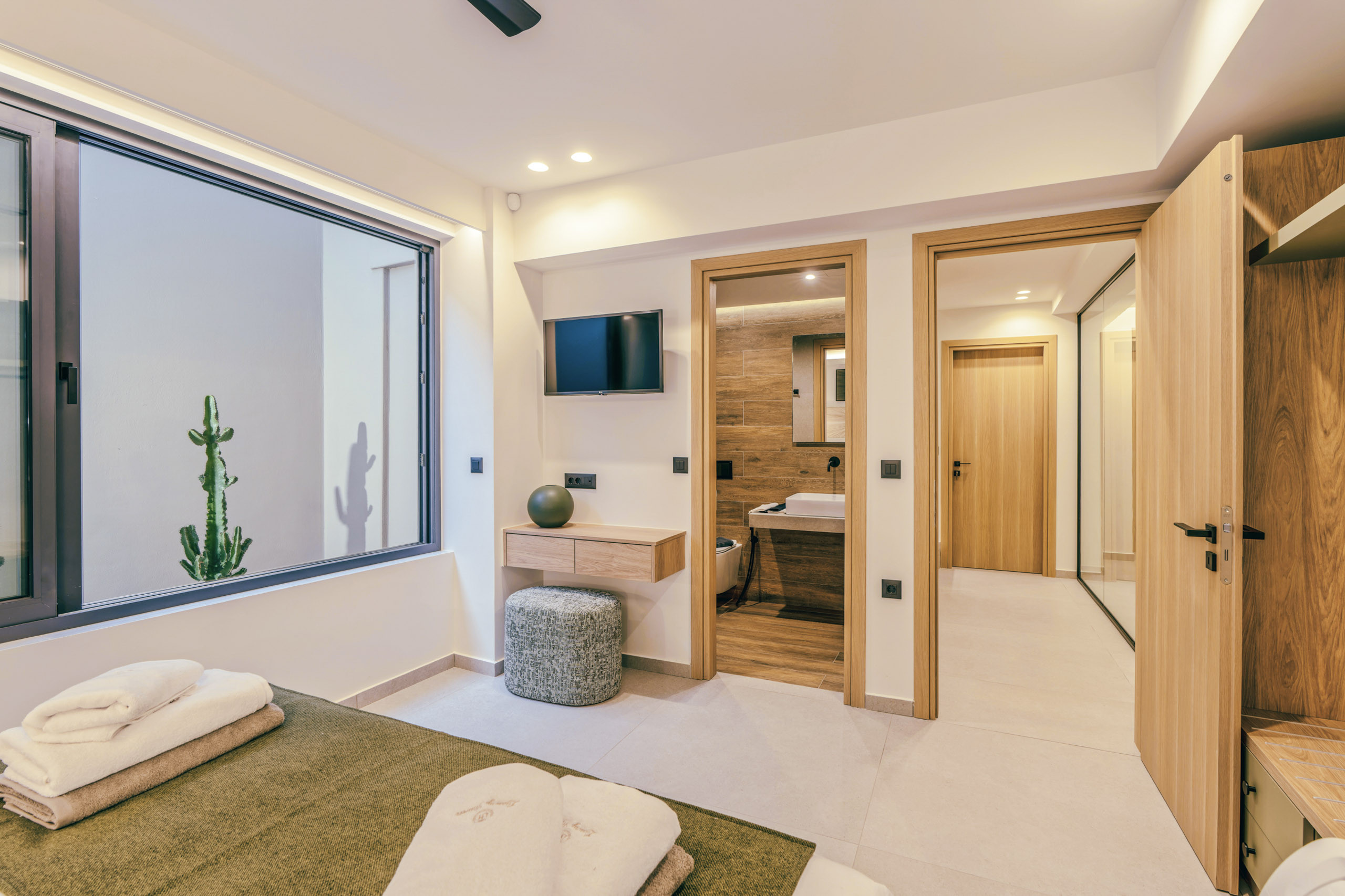 Die Residenz bietet Klimaanlage (Kühlung/Heizung) in allen Bereichen, kostenloses WLAN und eine Sicherheitstür. Luxury Heaven mit privatem Pool (kann auf Anfrage beheizt werden) befindet sich an einer strategischen Lage mit direktem und einfachem Zugang zur Nationalstraße, was nahtlose Reisen über die Insel erleichtert. Es liegt nur 1 km vom nächsten Strand entfernt, 3 km von Panormo und 17 km von der Stadt Rethymno. Seine Lage dient als ideale Basis für Besuche von Hauptattraktionen wie der Melidoni-Höhle (13,5 km) und dem Museum von Alten Eleutherna (20 km) und kombiniert perfekt die Ruhe der Natur mit kulturellen Ausflügen.