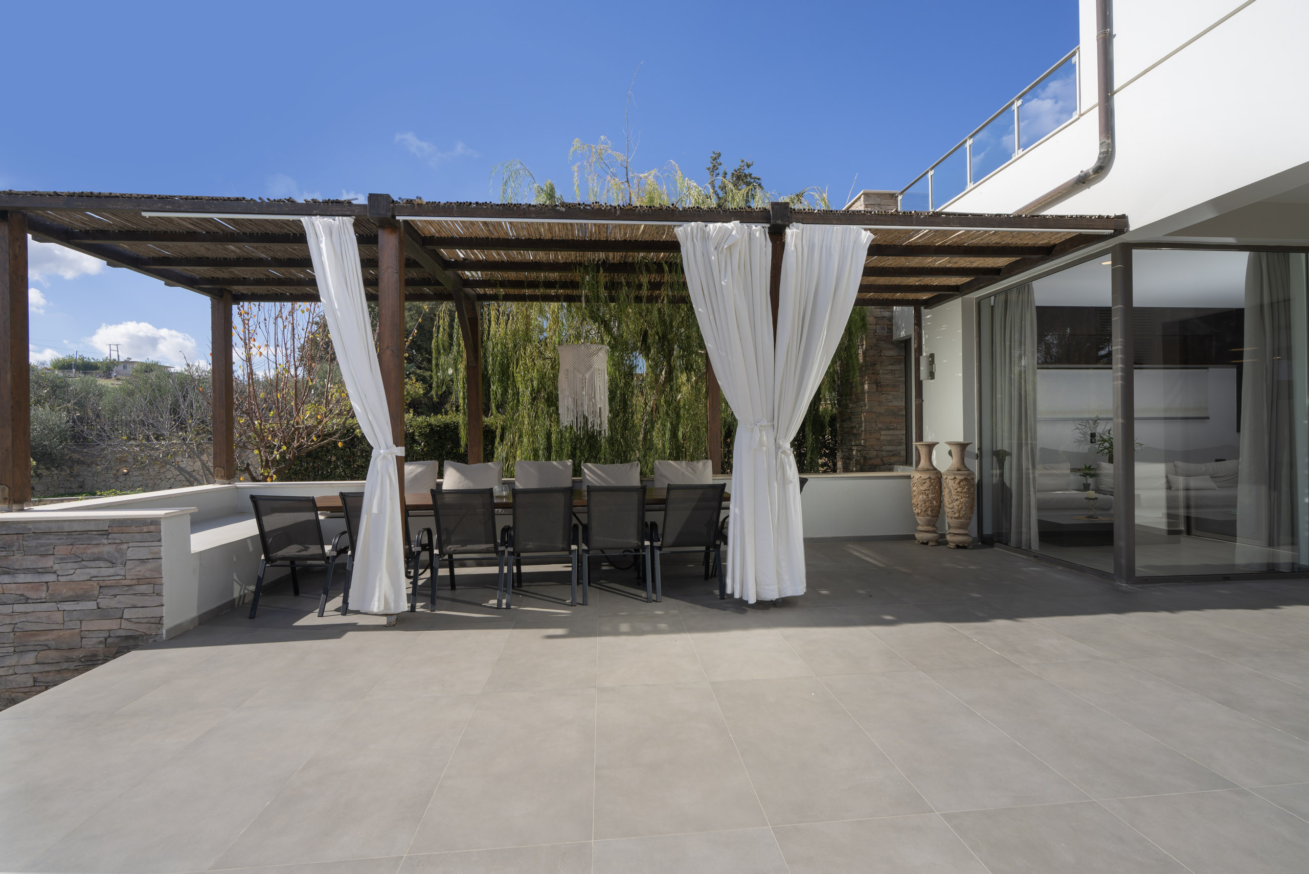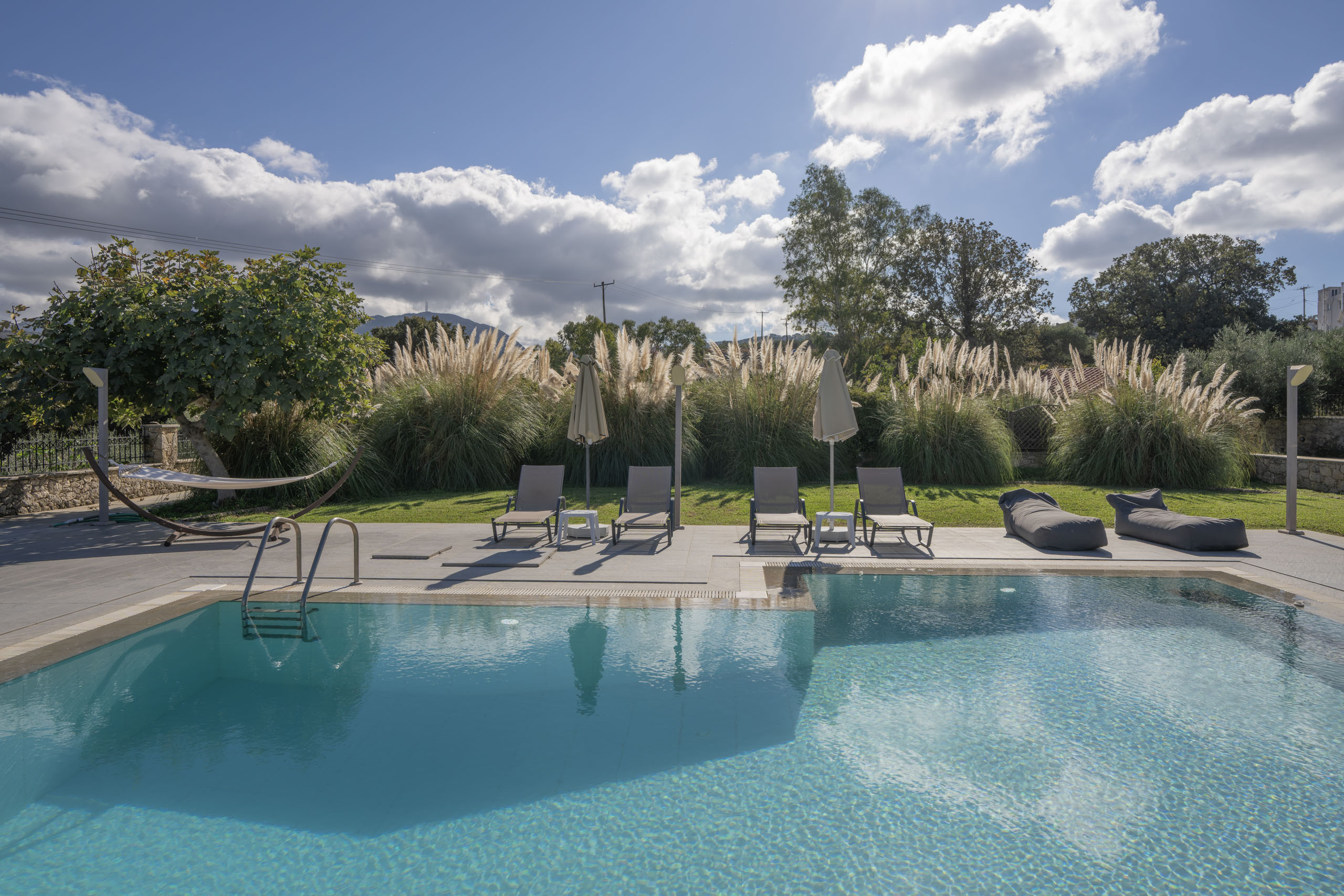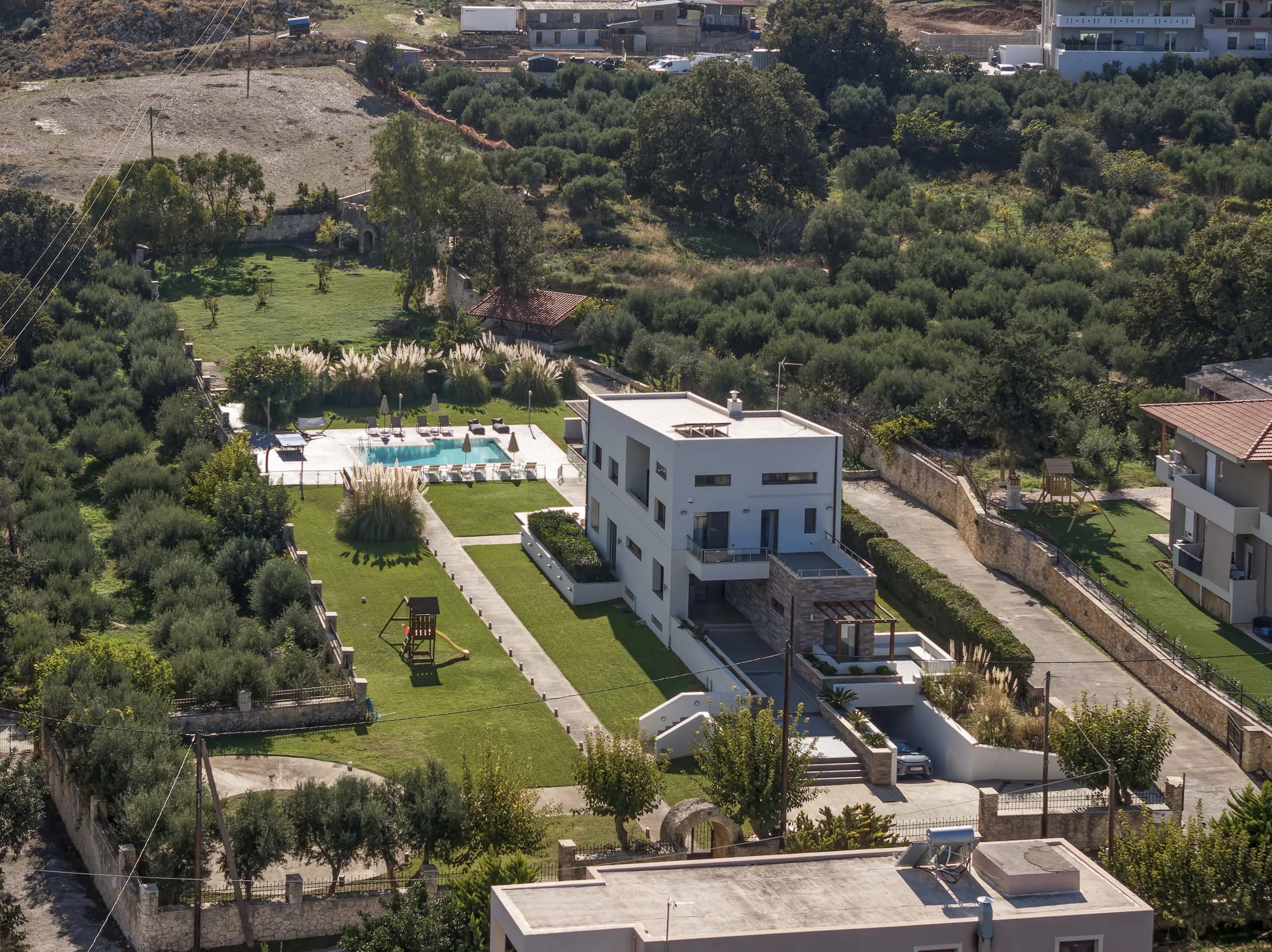 Das Markenzeichen der Villa Sfedami ist der riesige grüne Garten mit einer Gesamtfläche von 2000 m², mit einem luxuriösen 55 m² großen Pool mit Spa, der den Bereich überblickt und Sie einlädt, stundenlang zu entspannen oder auf den Sonnenliegen und der Outdoor-Lounge Spaß zu haben.