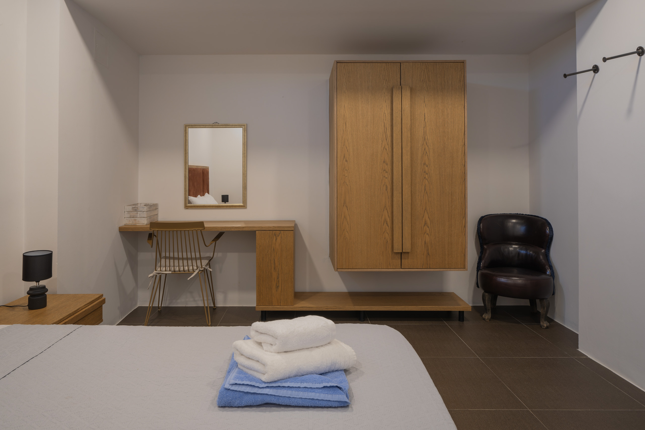 Im Erdgeschoss befindet sich auch ein Schlafzimmer mit Doppelbett, Kleiderschrank und einem privaten Balkon, ein Badezimmer mit Dusche, WC und ein Büro für diejenigen, die auch im Urlaub ihre Arbeit organisieren möchten.