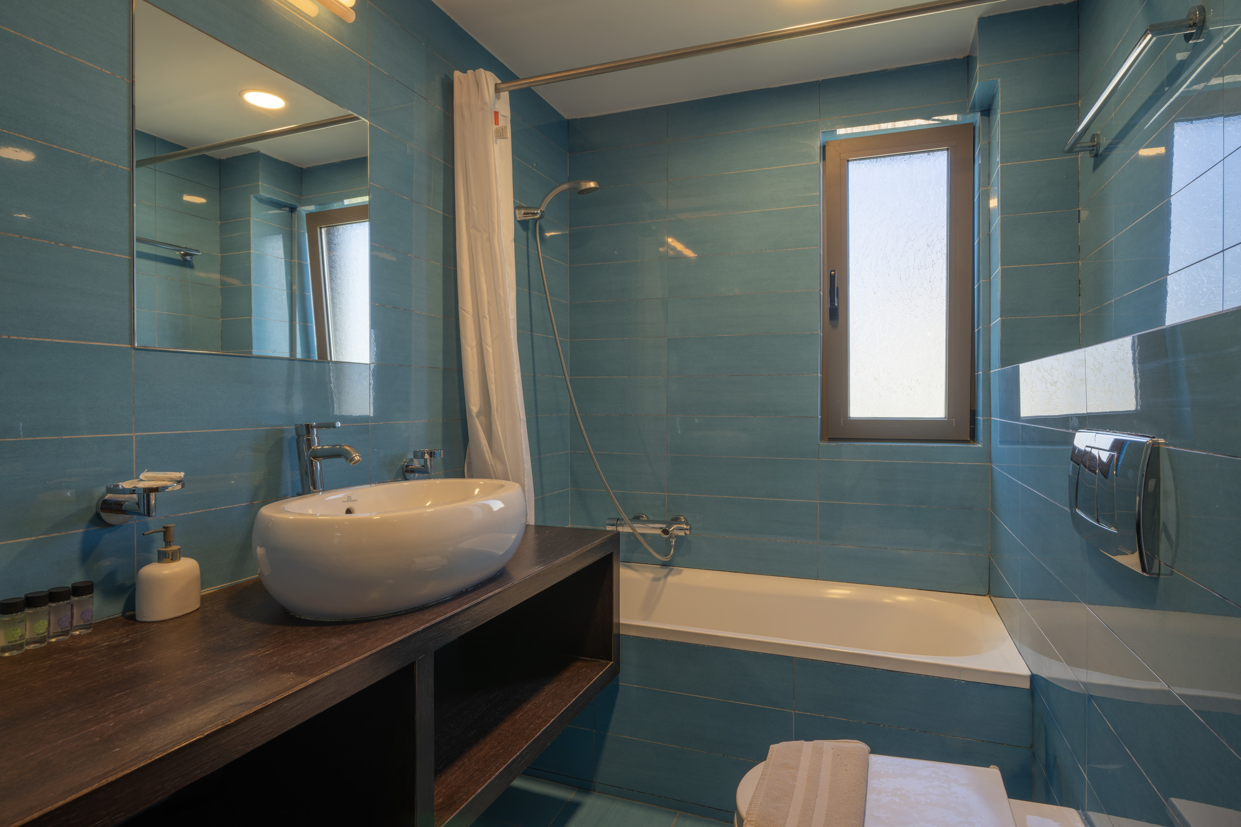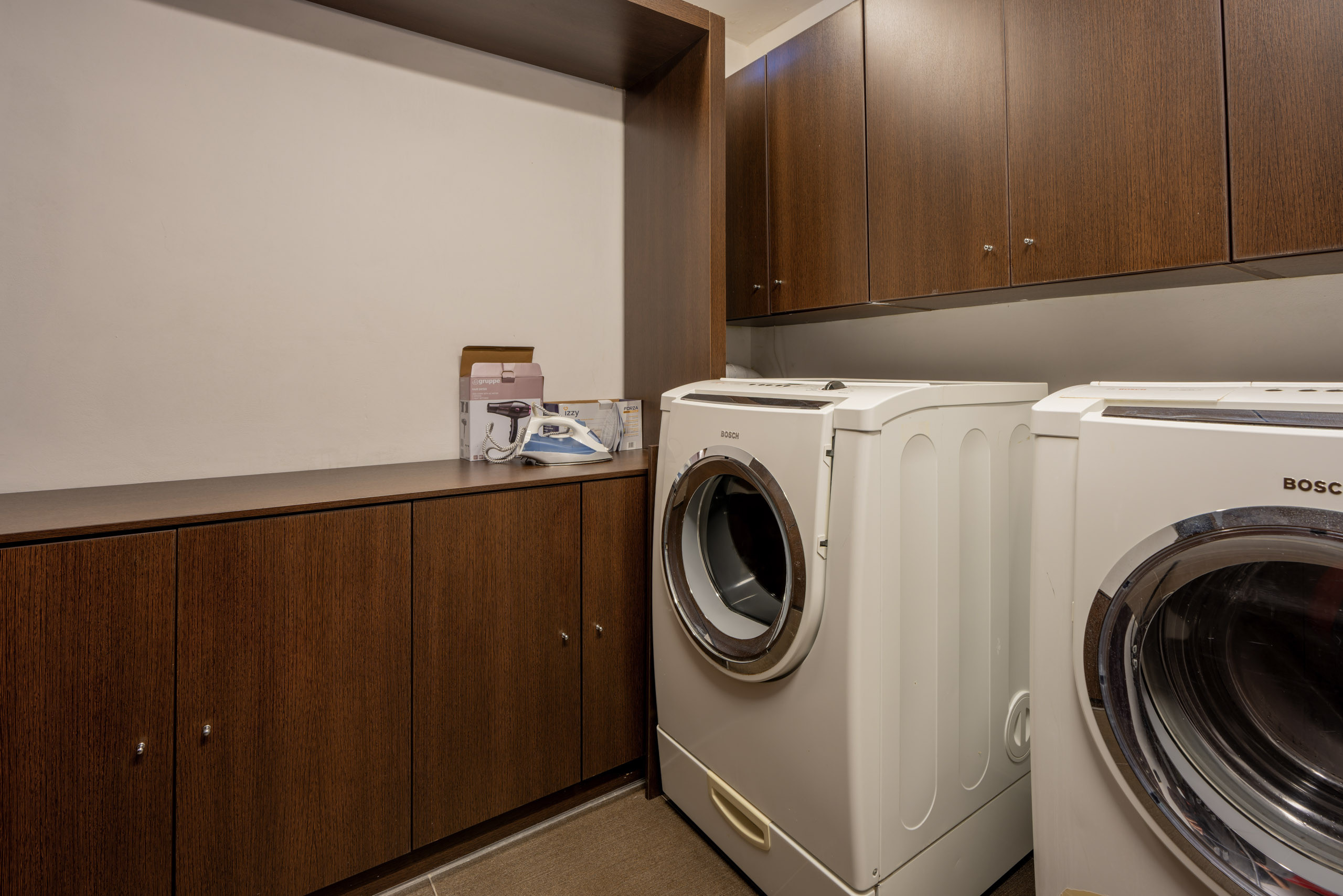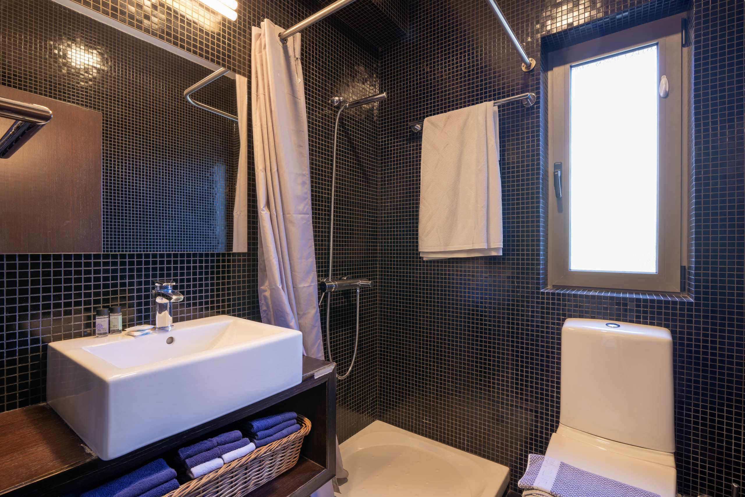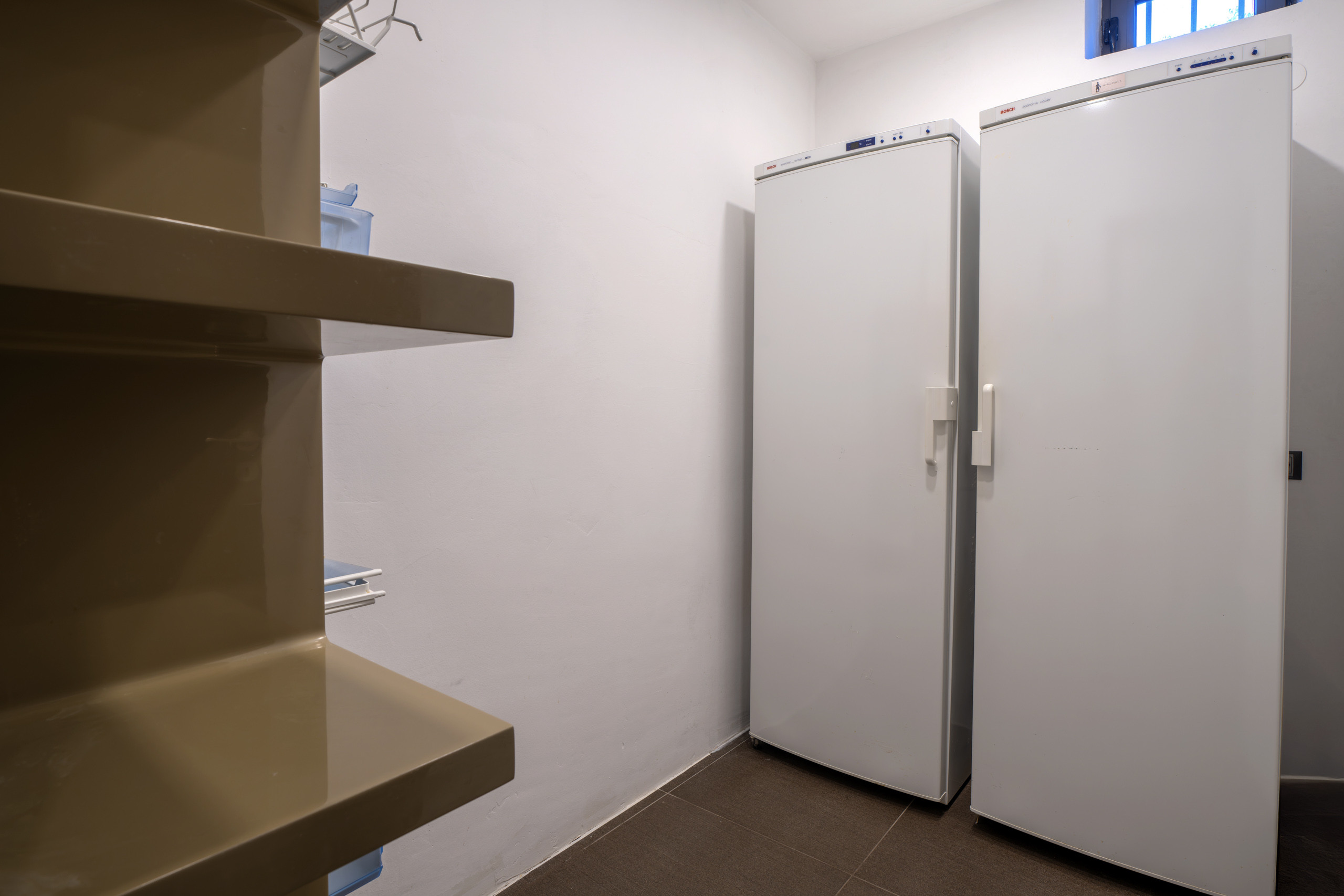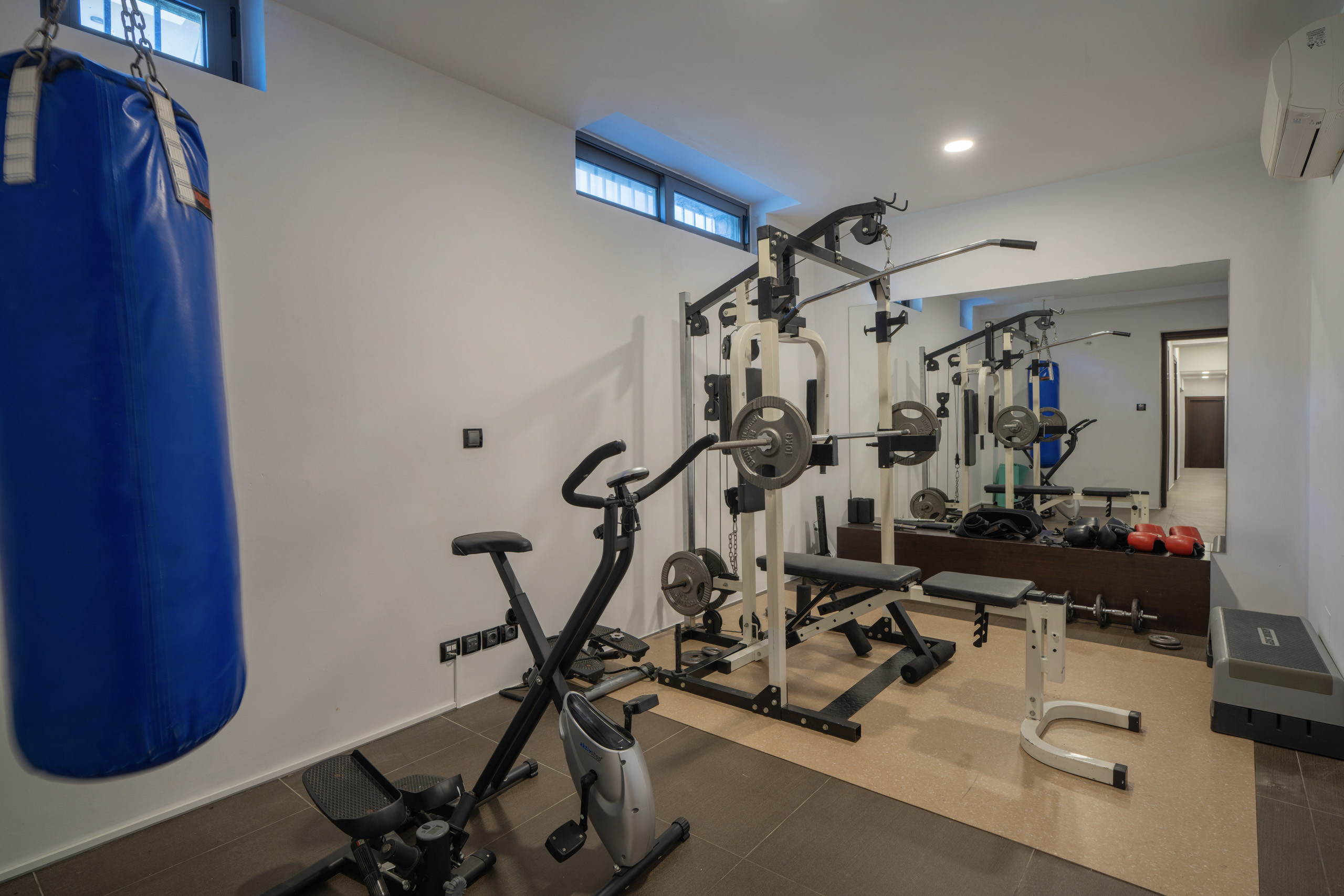 Im Keller des Hauses gibt es zwei weitere Schlafzimmer mit je zwei Einzelbetten, in denen auf Anfrage ein zusätzliches Bett aufgestellt werden kann. Hier finden Sie auch ein Badezimmer mit Dusche, einen Fitnessraum für diejenigen, die Urlaub machen, aber auch fit bleiben möchten, einen Raum mit Waschmaschine und Bügelbrett.