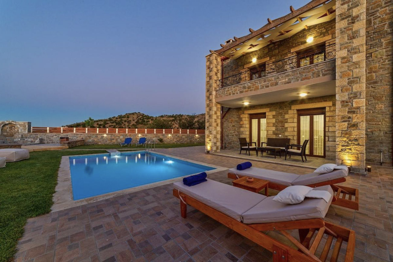 Die Villa Nikos ist eine zweistöckige, aus Stein gebaute Residenz mit einem Swimmingpool im malerischen Dorf Zoniana in Rethymnon. Es ist eine 120 m² große Residenz, die 6 + 1 Personen komfortabel und luxuriös beherbergen kann. Sie liegt 35 km vom berühmten Strand von Bali, 43 km von Heraklion und 52 km von Rethymnon entfernt. Der nächstgelegene Flughafen ist der Nikos Kazantzakis in Heraklion, 44 km entfernt.