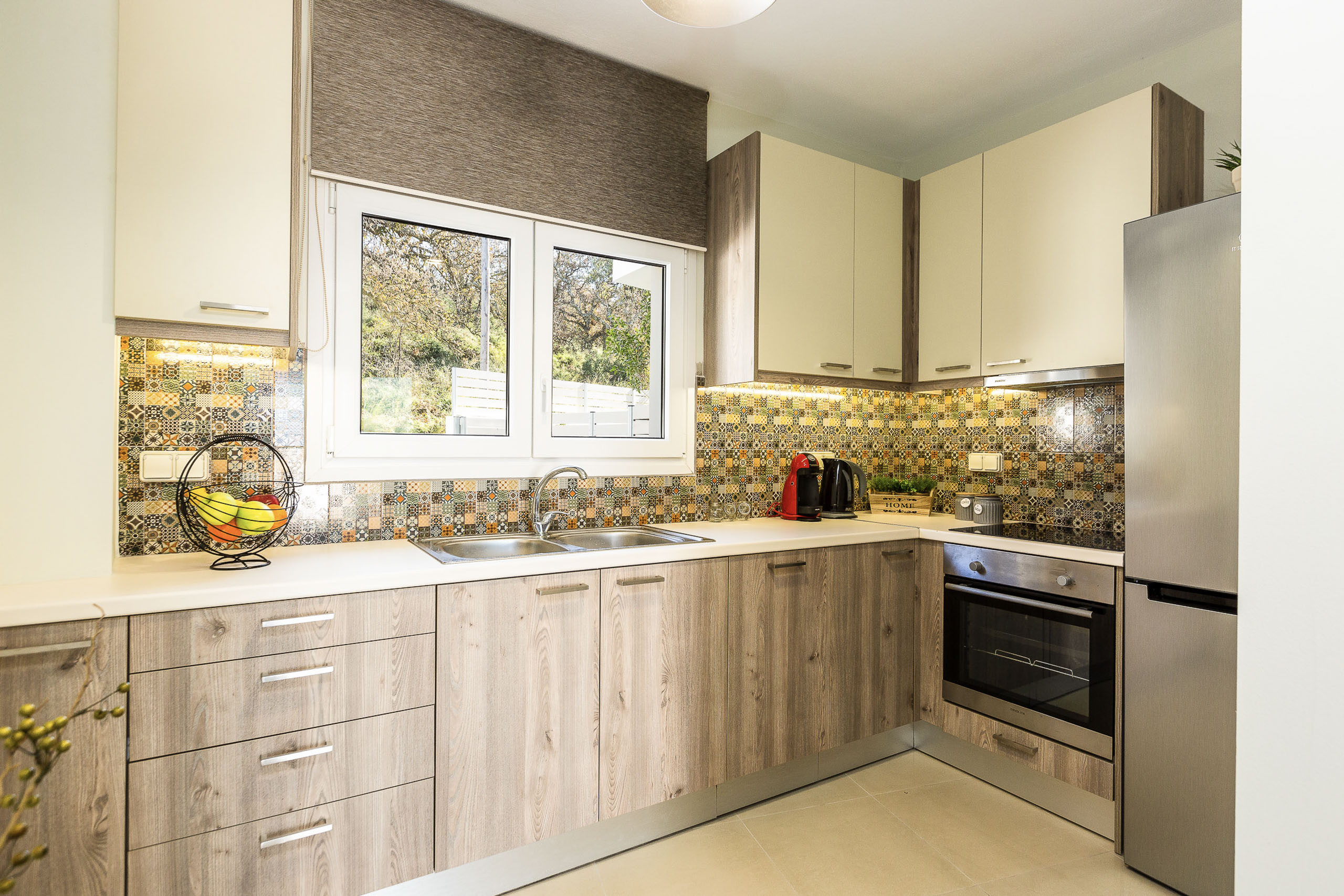 La cuisine, est équipée avec réfrigérateur, micro-ondes, four, congélateur, lave-vaisselle, vaisselle/couverts, ustensiles/cuisine, cafetière, grille pain et bouilloire.