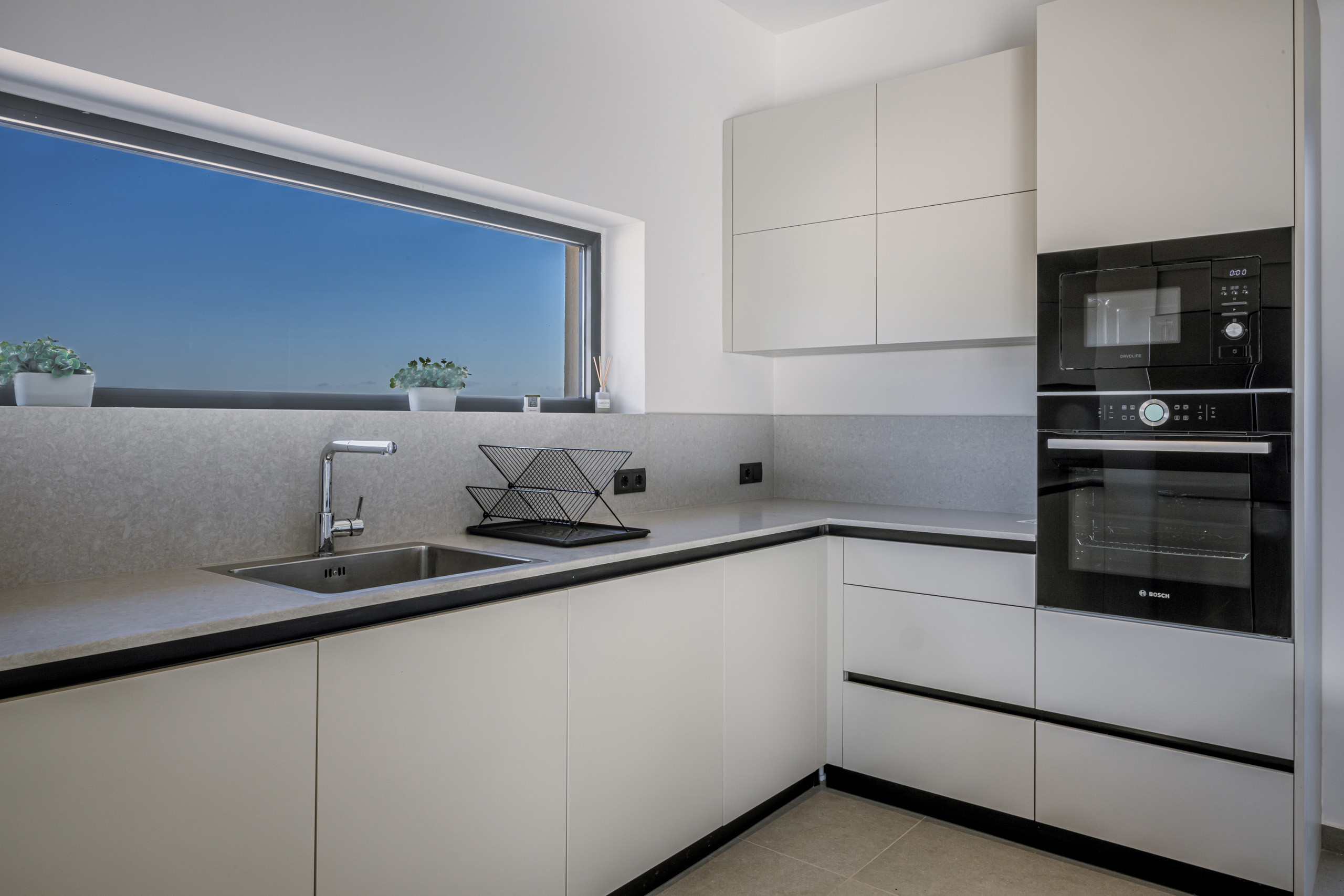 La cuisine, est équipée avec réfrigérateur, micro-ondes, four, lave-vaisselle, vaisselle/couverts, ustensiles/cuisine, cafetière, grille pain et bouilloire.
