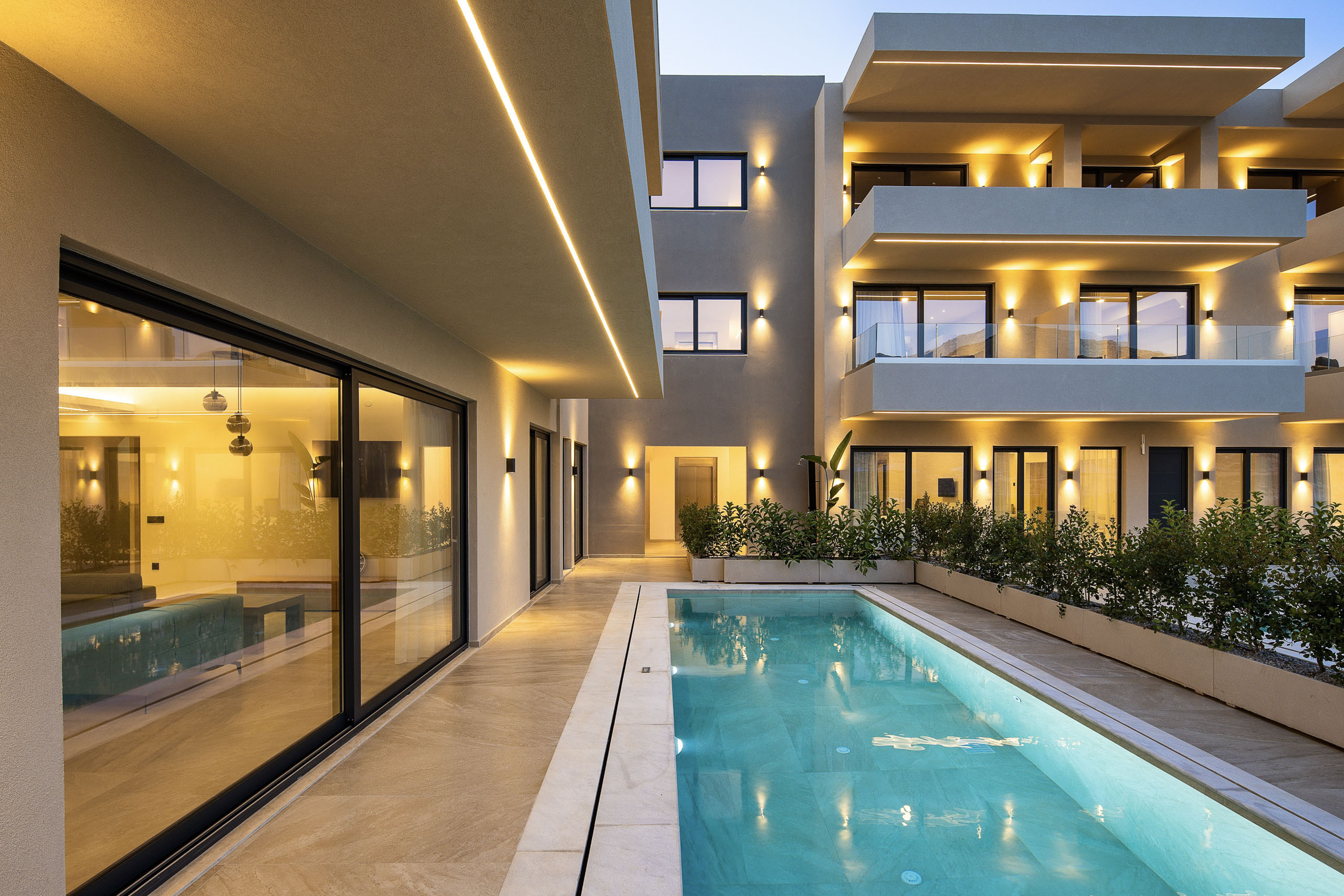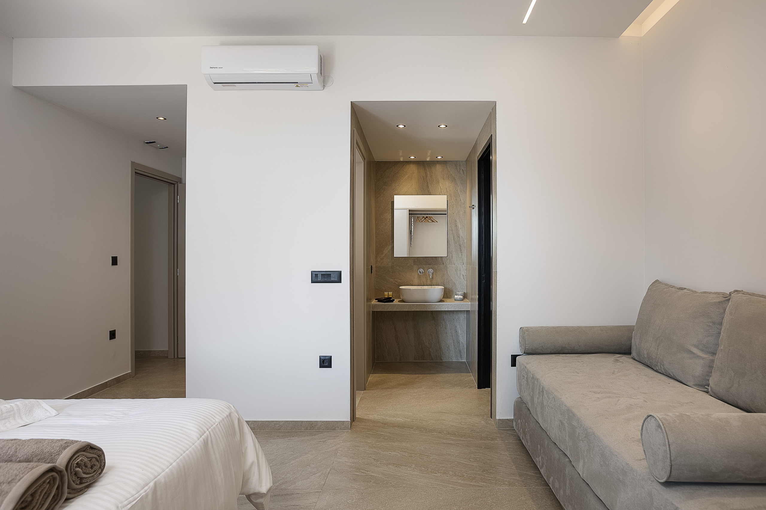 For larger groups, up to 3 additional suites located directly above the villa in the same building can be added to your reservation, allowing accommodation for up to 12 guests total while keeping everyone together.