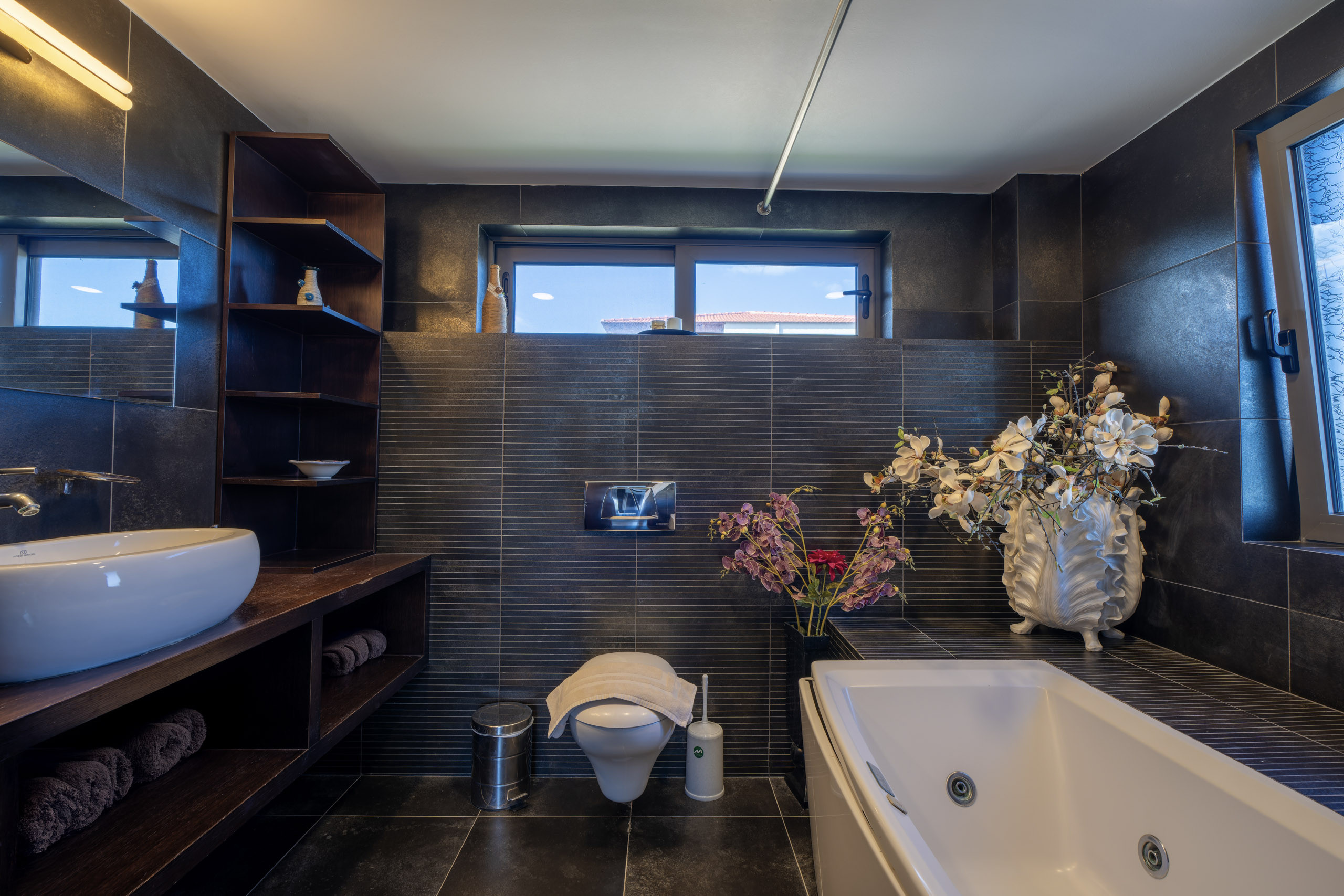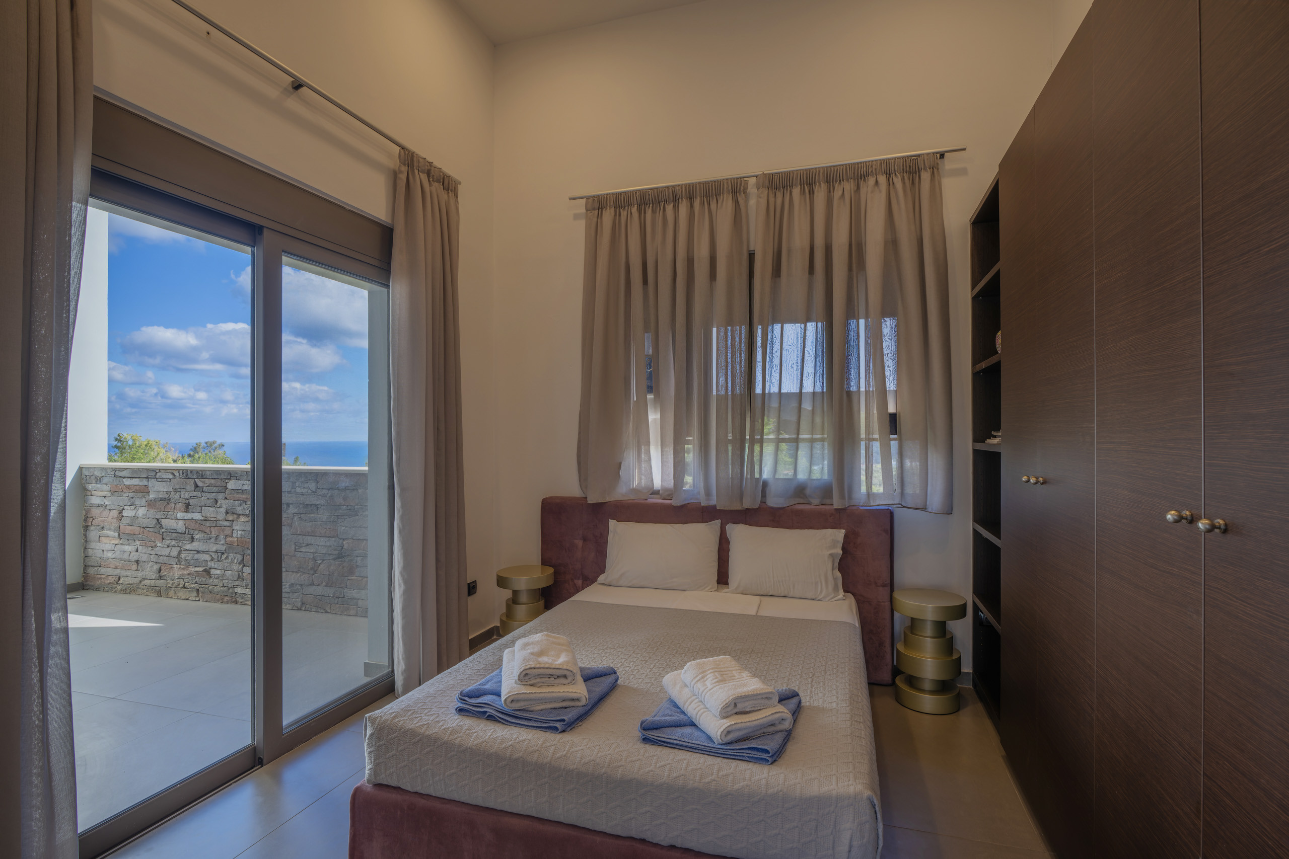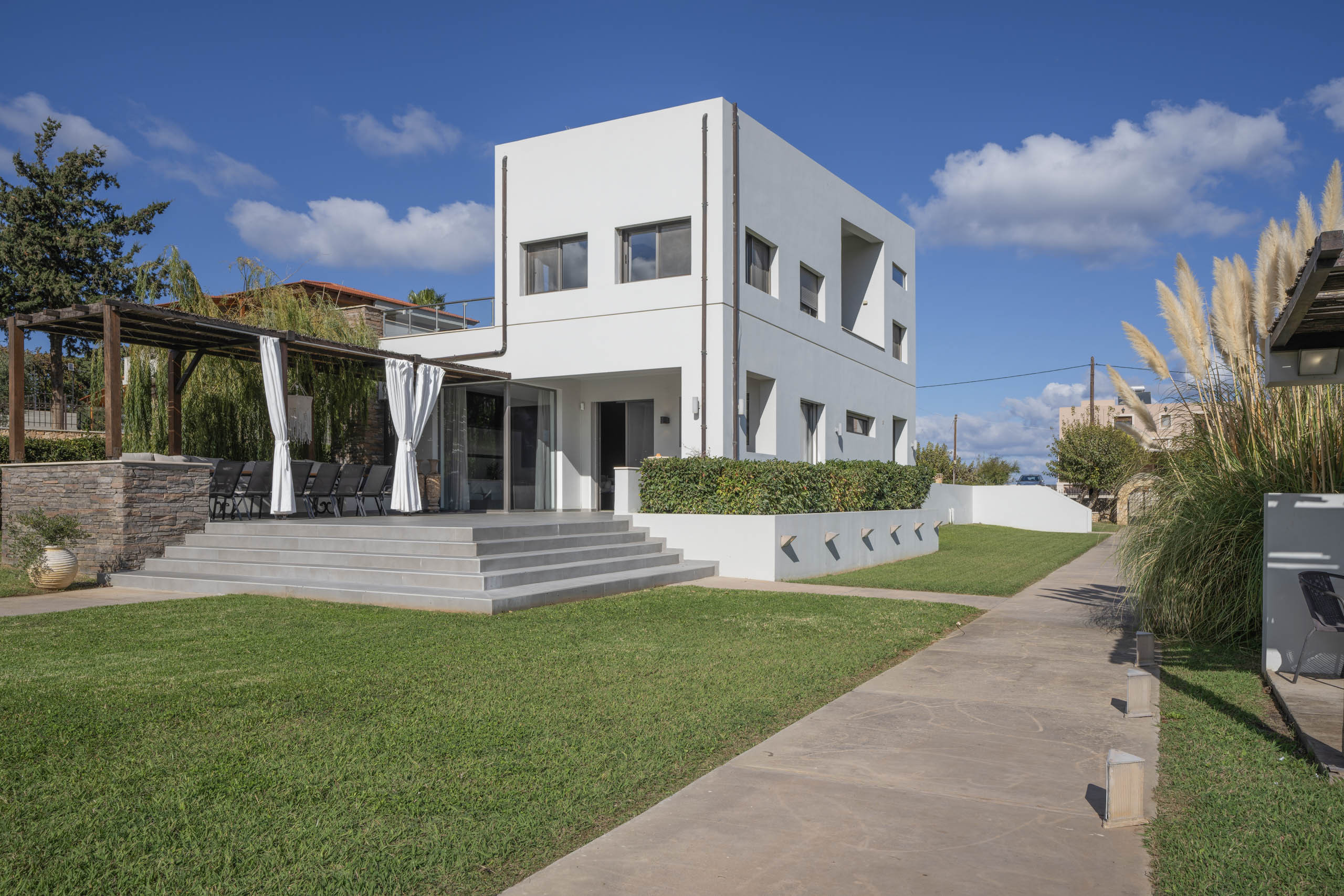 Villa NaturaVilla Natura is an impressive three-storey villa with an attic and a panoramic sea view of a total area of 250 m², built on a plot of 2000 m², with a 40 m² heated swimming pool that offers its guests absolute relaxation and luxurious comforts. It can comfortably accommodate up to 14 people in beds and up to 16 if necessary. Villa Natura is located in the area of Three Monasteries, just 3 km from the center of Rethymno and has direct access to the main road of the island so that you can easily visit all the points of interest. Enjoy your vacation in a well-kept space with comfort and affordable luxury.InteriorOn the first floor of the house, the visitor will find a spacious and bright space consisting of the living room, with three comfortable sofas, the spacious dining room that will host your meals, the living room with the fireplace, 42 inch Smart TV, PlayStation 4 and speaker bluetooth, for endless hours of joy, fun and play. Large windows lead to the comfortable balcony, with the outdoor dining area and the wonderful sea view. The kitchen of the house is fully equipped with modern appliances and everything else you need to prepare and serve your meals and has direct access to the barbecue and outdoor dining area. Finally on this level there is a bedroom with a double bed 160X2, private bathroom with shower and air conditioning.Going up the internal wooden staircase of the house you will find yourself on the second floor. There are three more bedrooms there. The first is the master bedroom with a double bed 160 X2 which has a wardrobe, smart TV, air conditioning and a private balcony with a sea view. The master bedroom has a private bathroom with Jacuzzi, hydromassage shower cabin and sauna.The second bedroom has a double bed 160 X 2, air conditioning, a wardrobe and a private balcony, while the third bedroom on the first floor also has a double bed 160 X 2, air conditioning and a balcony with a sea view.Also, on this floor, there are two more bathrooms available with shower, mini fridge and the laundry room with washing machine and clothes dryer.The internal wooden staircase will also lead you to the attic with the vaulted ceiling containing a double bed 155 X 2, two single beds 120 X 2 and 0.90 X 2, air conditioning and a fireplace.The ground floor of the house has direct access to the outside area and has 1 bedroom with double bed 1.60X2, two sofas, Media Strom, that can comfortably accommodate two more guests, air conditioning and wardrobes, a small kitchen and a bathroom with a shower.ExteriorThe outdoor area of VILLA NATURA will really leave you fully satisfied. It has an impressive view of the Aegean Sea and many facilities such as the private heated pool of 40 m² and a depth of 1.40, but also a separate children's pool for our little friends, with a depth of 0.70. Around the pool area you have the possibility to relax and enjoy the sun under the umbrellas, on the comfortable sunbeds, on the outdoor bed and poufs that are there. There is also an outside bathroom with a shower and an additional outdoor shower. You can enjoy your food under the pergola in the cozy outdoor dining area or your drink and coffee in the outdoor lounge. In the outdoor area there is also a gas barbecue and a playground for our little guests, in a specially designed area with lawn for endless hours of play and relaxation. The property is gated and has parking for five cars as well as WiFi throughout, inside and outside the house. Create new experiences with your family and friends in a house that we made with special care for you. Services included in the price• cleaning every third day• change of sheets and towels every three days• pool towels are provided• garden maintenance• pool cleaning and maintenance two to three times a week depending on the weather.• upon your arrival, soft drinks, coffees and basic cooking materials• cot and high chair for babies, upon your request.Services upon request for an additional fee• Heated Pool (70€ / day)• doctor• massage• daily cleaning• car rental• transfer to and from the airport• photographer• chef We are here to try to satisfy any desire you express to us.Licence Number: 1290577