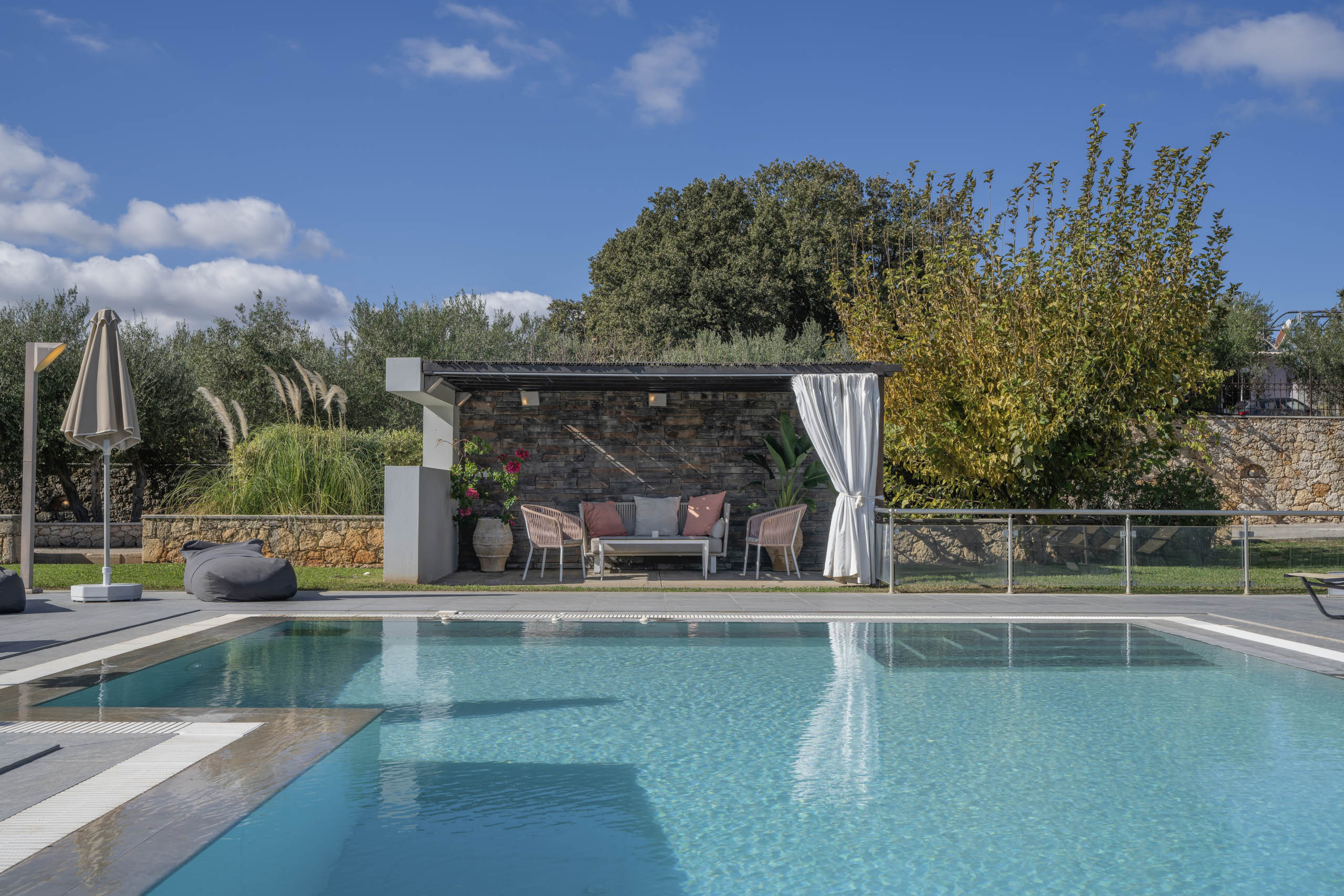 The distinctive feature of Villa Sfedami is the vast green garden of a total area of 2000 m2, with a luxurious 55 m² pool with spa, overlooking the area and inviting you to spend hours relaxing or having fun on the sun loungers and the outdoor lounge .