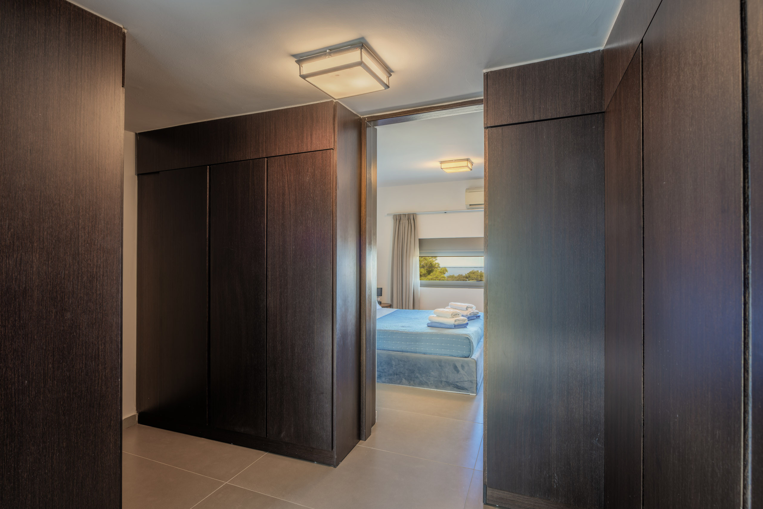On the second floor are four bedrooms, all with double bed, wardrobes, air conditioning and the tree of them with a private balcony. There are also two bathrooms one with a large spa- bath and the other with a shower.